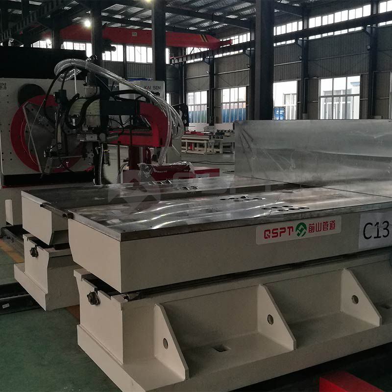 Performance features: Suitable for fittingup & welding short spool pieces such as “fitting + pipe + fitting”; welding efficiency increased by more than 100%; one fixed type welding positioner with chuck; one telescopic boom for welding; one multi-functional fit-up head; one 15# machined rail;After finishing fitting up weld joint with fit-up machine and positioner , moving away the fit-up machine to start welding automatically; standard configuration: Lincoln Flextech650 multi-function welding power; TIG/MIG root welding with QSPT’s root welding technology; TIG/MIG/SAW fill-in and cap welding; operated with an aluminum alloy wire control box.